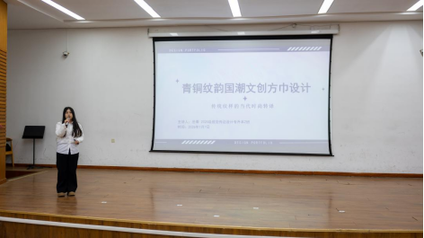 在姜翠萍宣读获奖名单后,现场进行了优秀学生作品展示,充分体现了学生们将文物元素转化为创新成果的智慧与匠心。学生代表在发言中分享了参与活动的收获与感悟,表达了对学校提供实践平台的感谢以及对文化创新传承的热情。